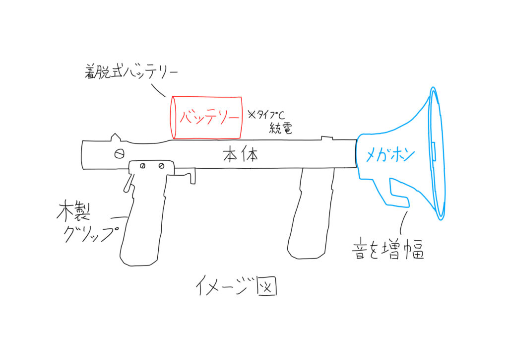 今回の兵器は、銃を模した形状となっています。全長40cm、1kg程です。