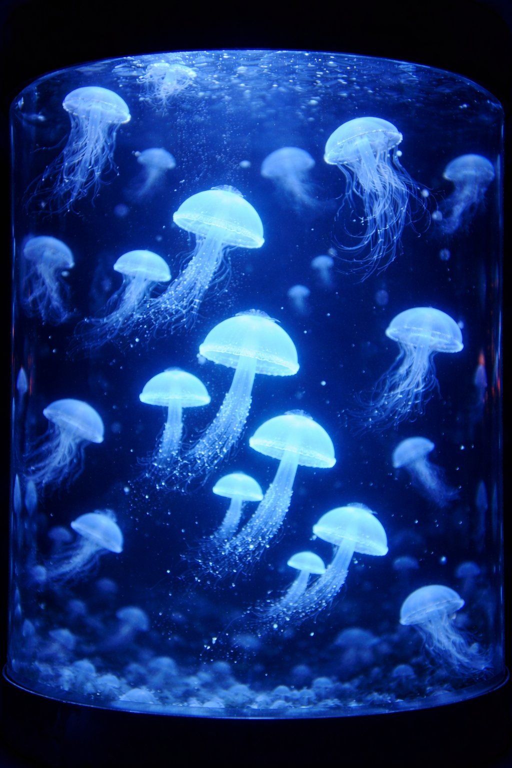 ウミキノコは他のクラゲと生息域が似ているため、他のクラゲを捕獲した時に偶然ウミキノコも捕まえていたことが稀にあります。中には、その特性から誰にも気付かれないまま水族館の水槽に入っている事もあるみたいです。当然説明書きなどは無いので、完全透過生物を知覚できる方からすると不可思議な景色に見えるらしいです。